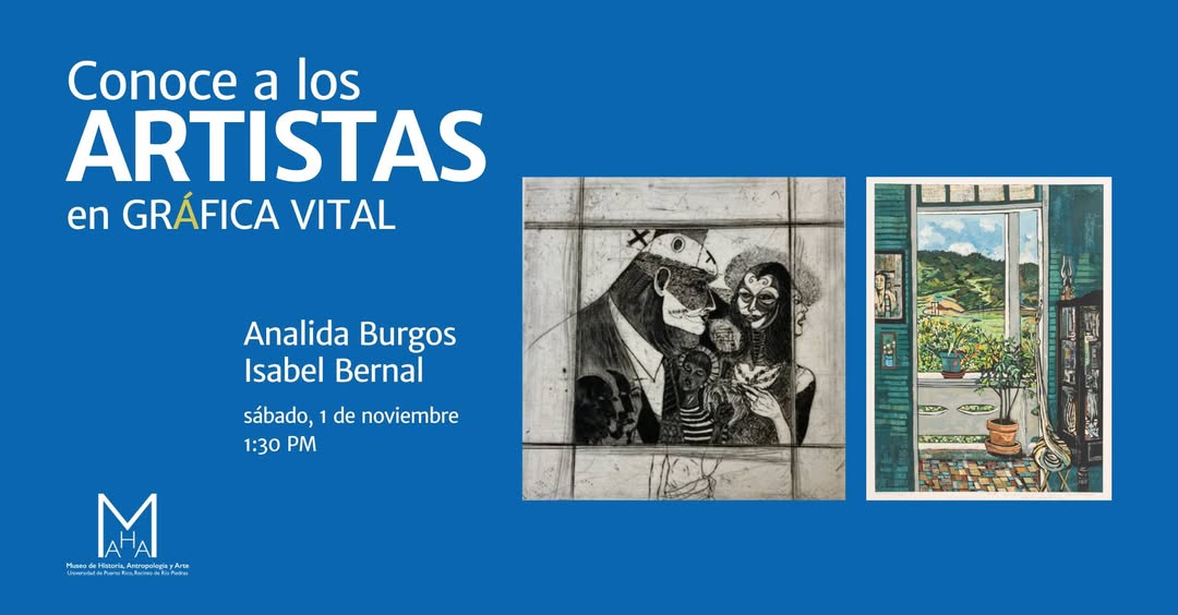 Acompáñanos a nuestro próximo conversatorio de la serie “Conoce a los artistas” en la exposición GRÁFICA VITAL. Conoceremos más a fondo a las artistas Analida Burgos e Isabel Bernal y sus procesos creativos a través de un diálogo donde compartirán con el público impresiones, memorias y anécdotas personales.