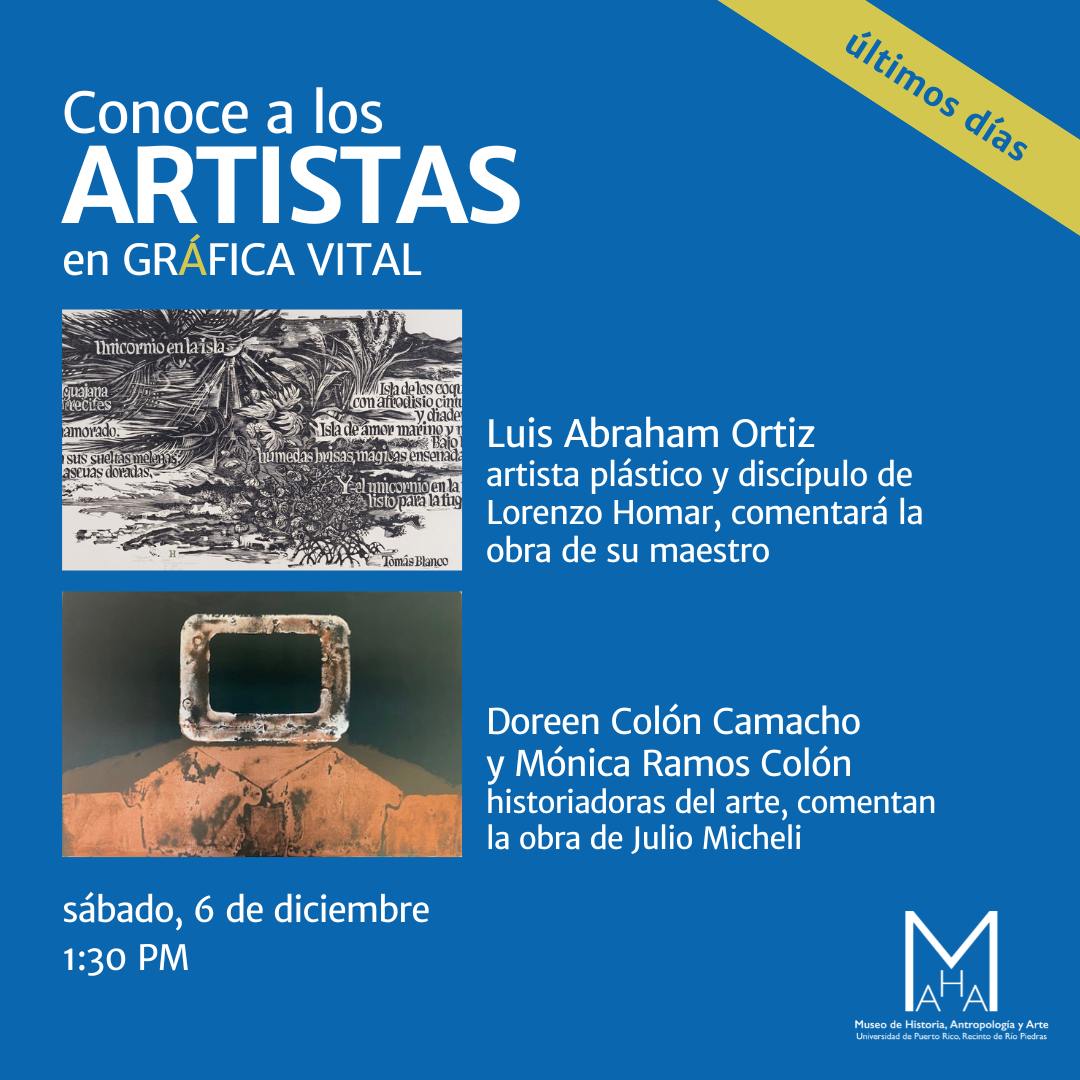 Conoceremos más a fondo al artista Lorenzo Homar, a través de Luis Abraham Ortiz, uno de sus discípulos más cercanos. También tendremos la oportunidad de conocer acerca del artista Julio Micheli a través de lo que compartirán con nosotros las historiadoras de arte, Doreen Colón Camacho y Mónica Ramos Colón