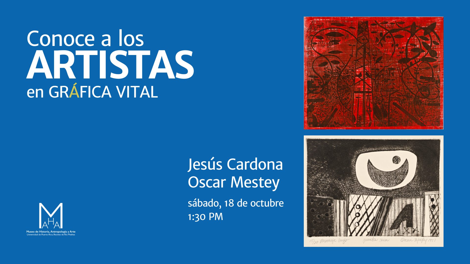 Les invitamos a un conversatorio para conocer más a fondo a los artistas Jesús Cardona y Oscar Mestey. Este conversatorio es parte de la serie “Conoce a los artistas” en la exposición GRÁFICA VITAL. En estos conversatorios nos acercamos al artista y a su proceso creativo a través de un diálogo donde compartirán impresiones, memorias y anécdotas personales.